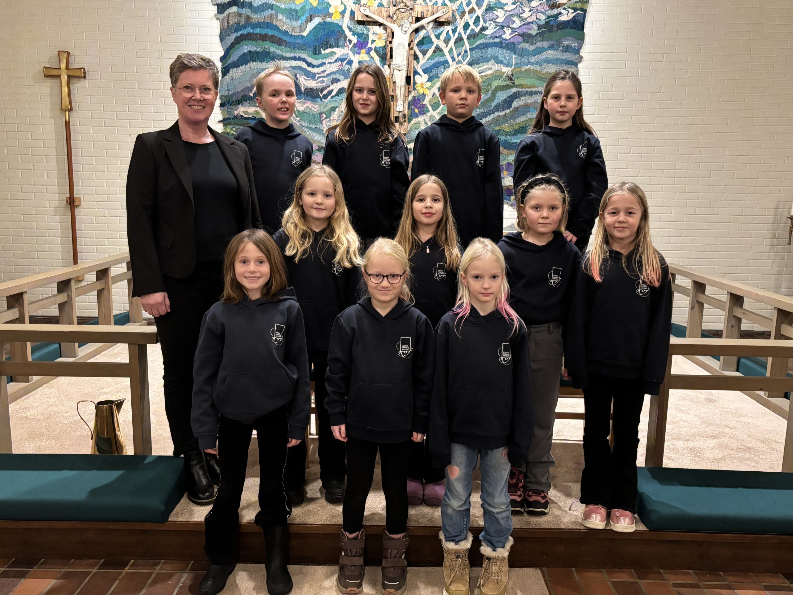 Koret er for jenter i 2. og 3. klasse og gutter i 2.klasse. De øver i Teie kirke tirsdag fra 16.45 til 17.45.